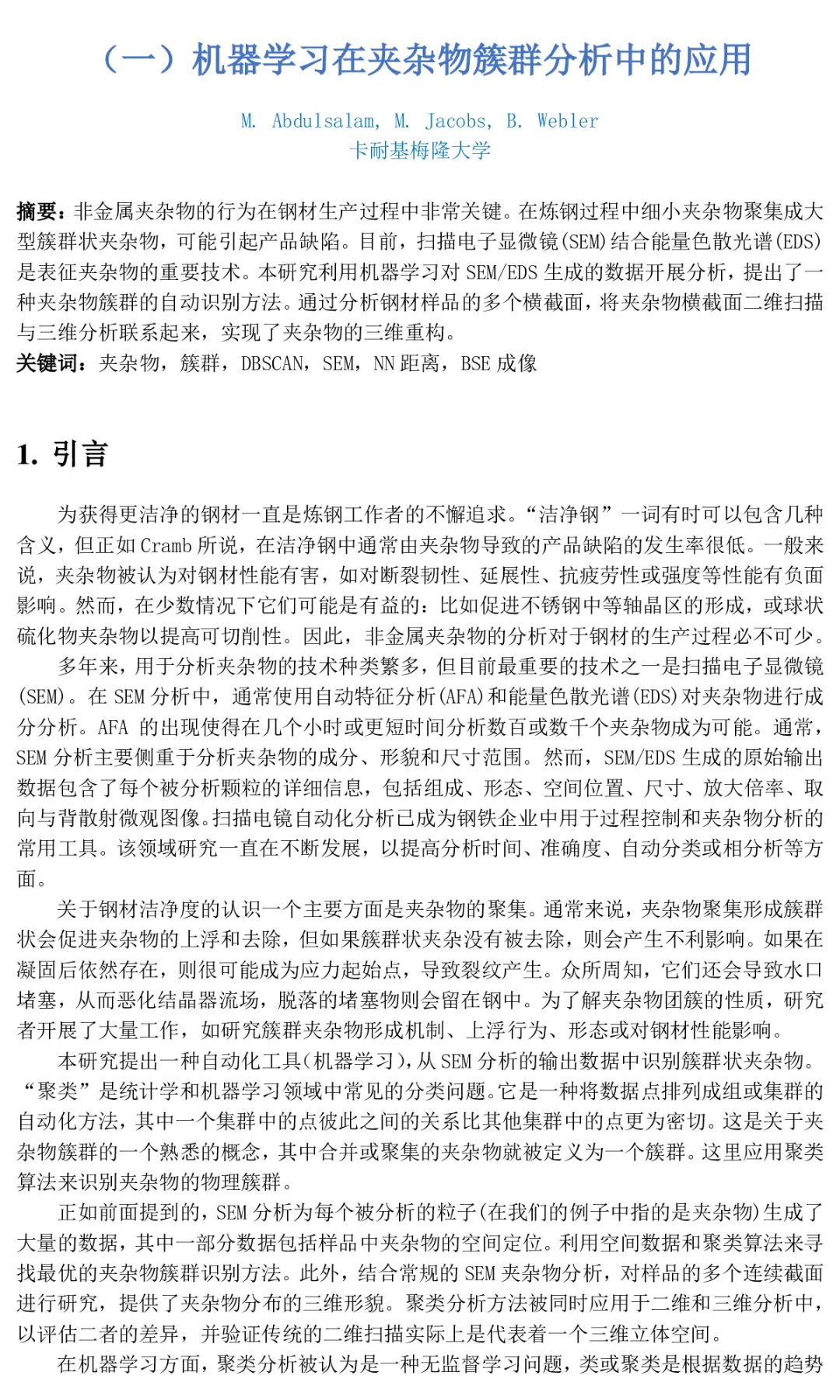 机器学习在夹杂物簇群分析中的应用