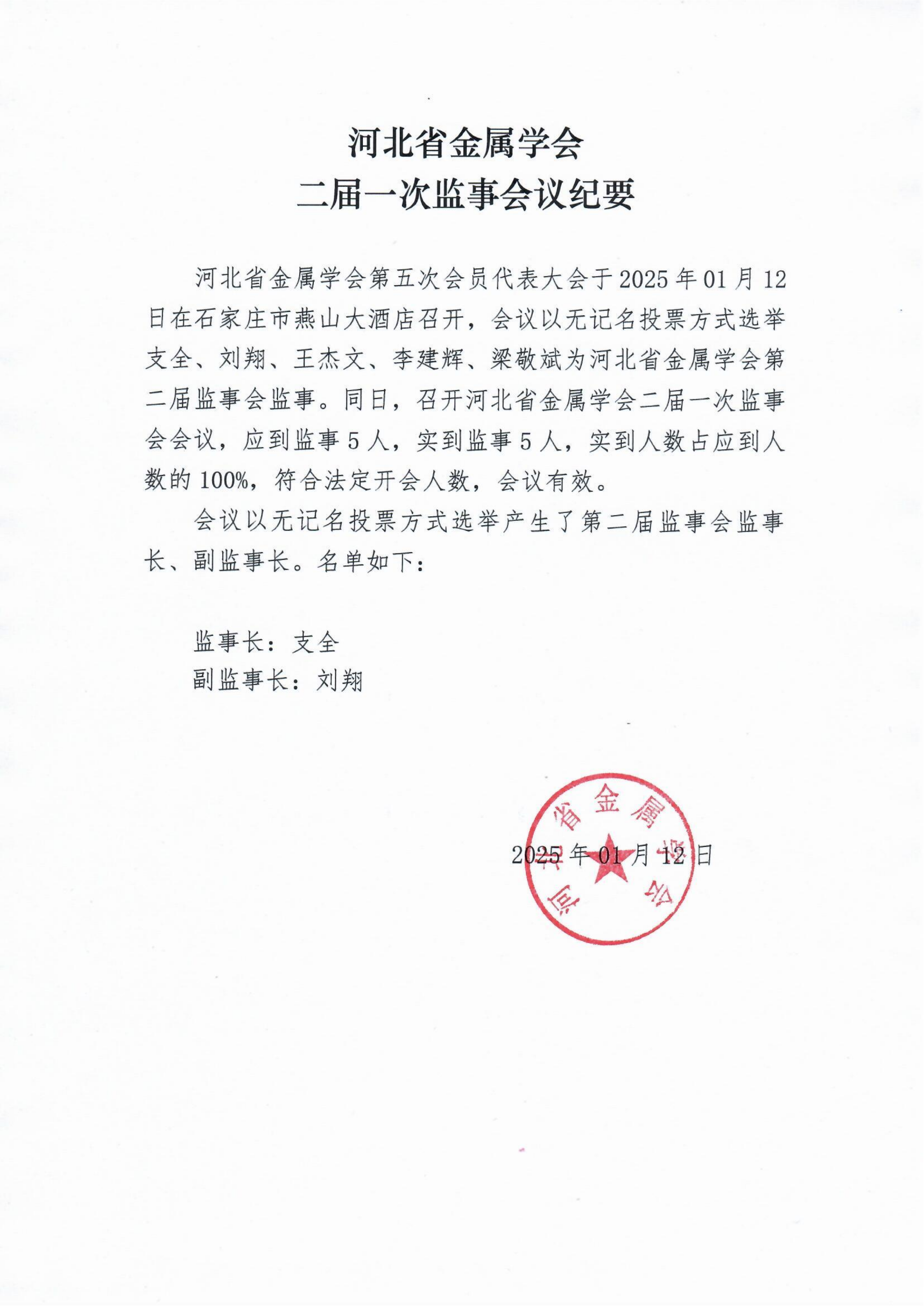 河北省金属学会二届一次监事会议纪要