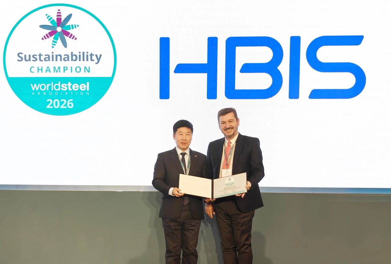 当地时间4月14日,世界钢铁协会在德国柏林公布2026年度钢铁行业“可持续发展优胜者企业”名单,对2025年积极参与世界钢铁协会可持续发展活动,并在践行可持续发展承诺方面表现最突出的14家会员企业进行表彰。河钢以环境、社会、管理和经济等全领域的优异表现,连续四年获此项殊荣。河钢集团董事长刘键,世界钢铁协会会长乌古尔·达尔贝勒(Uğur DALBELER),世界钢铁协会总干事埃德温·巴松出席颁奖仪式。