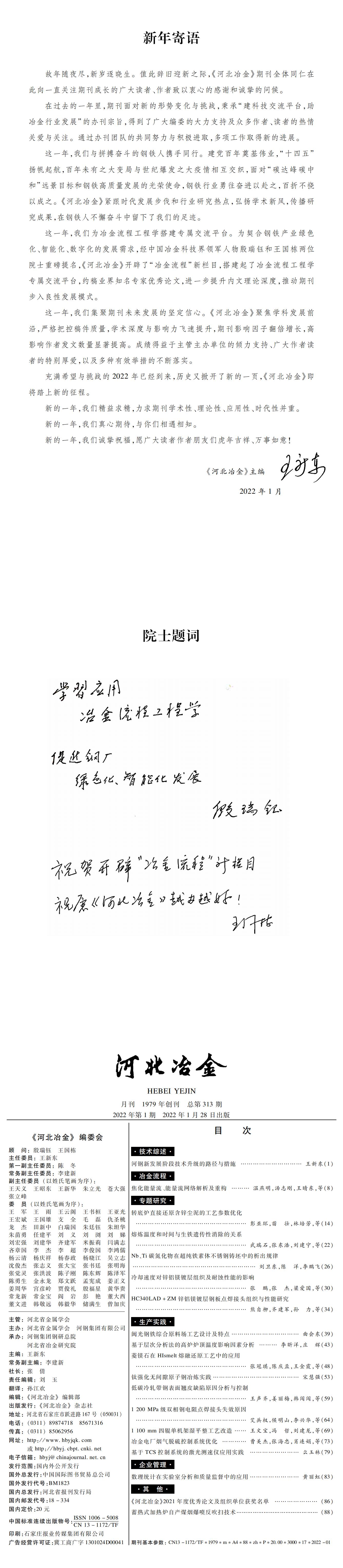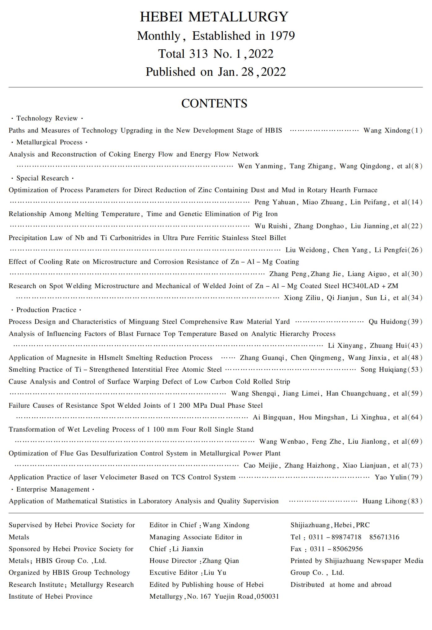 河北冶金2022年第1期目次