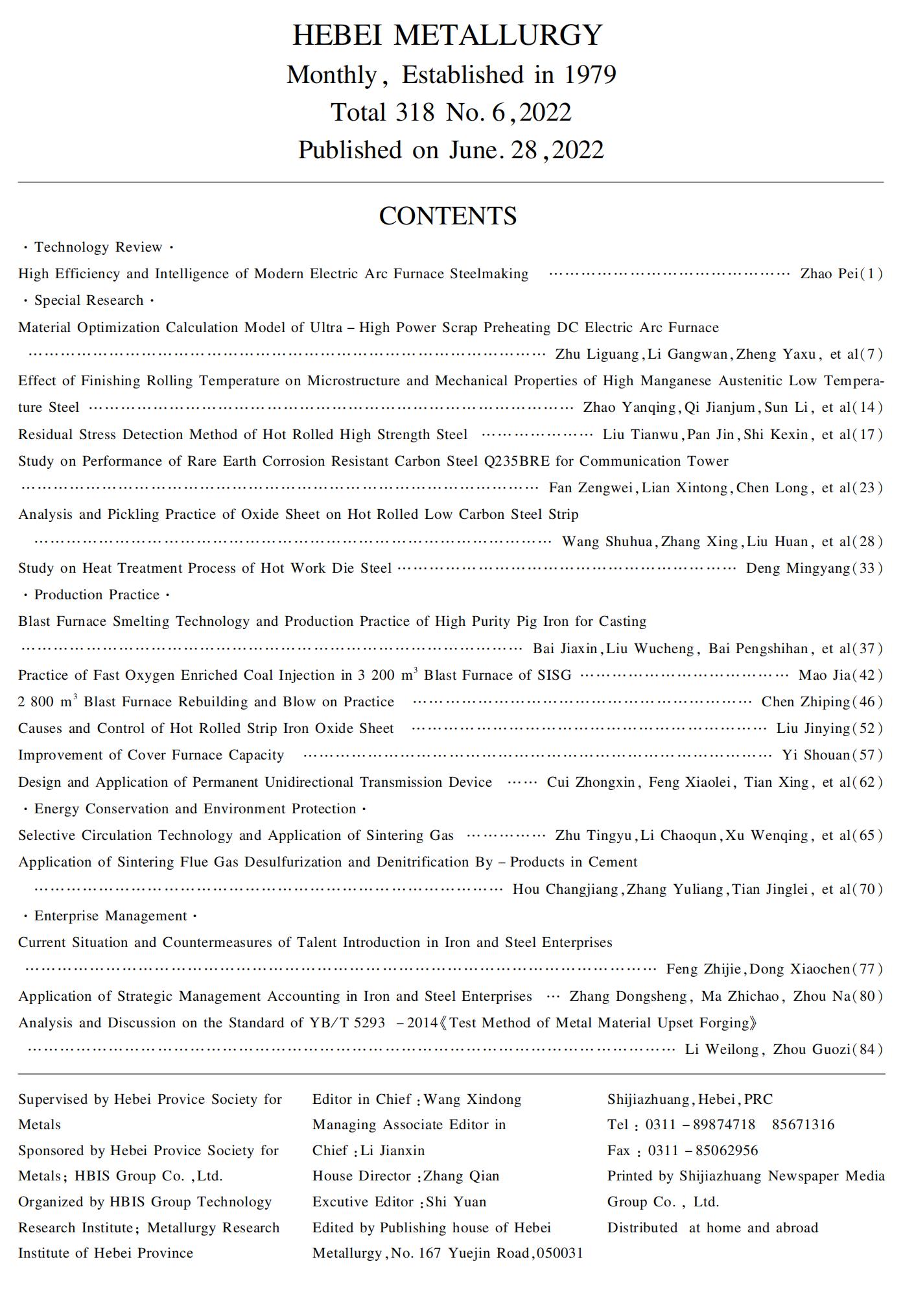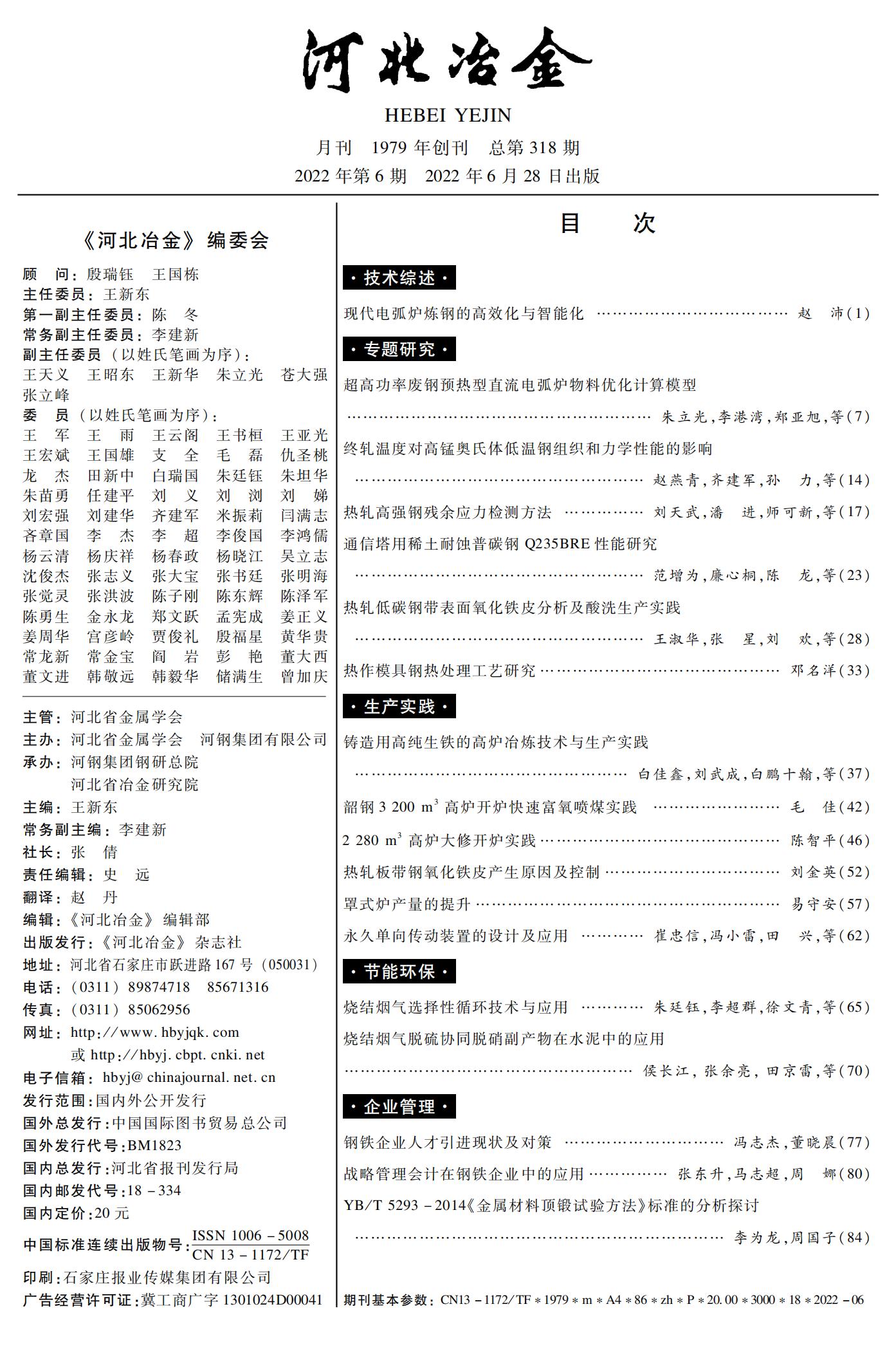 河北冶金2022年第6期目录
