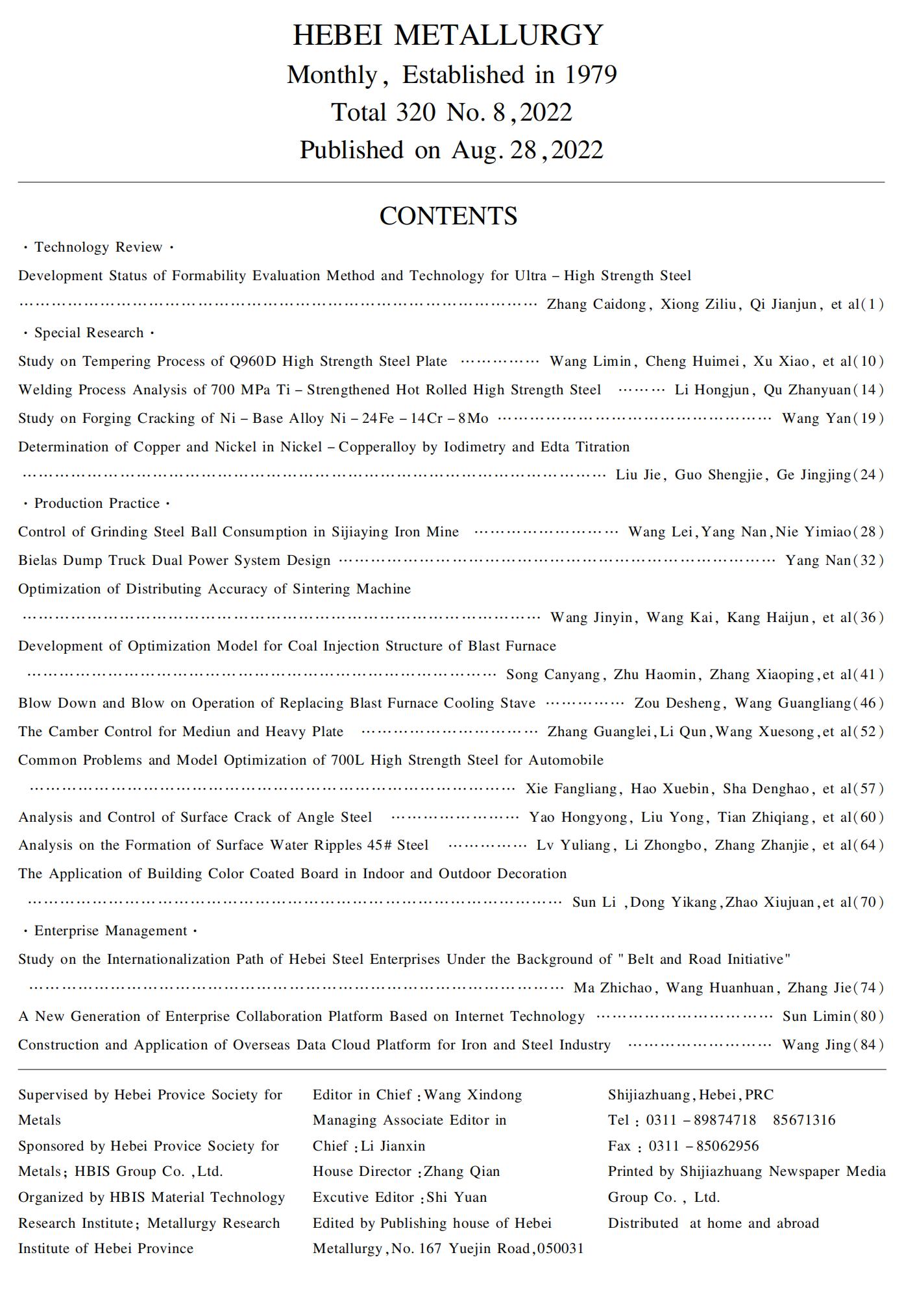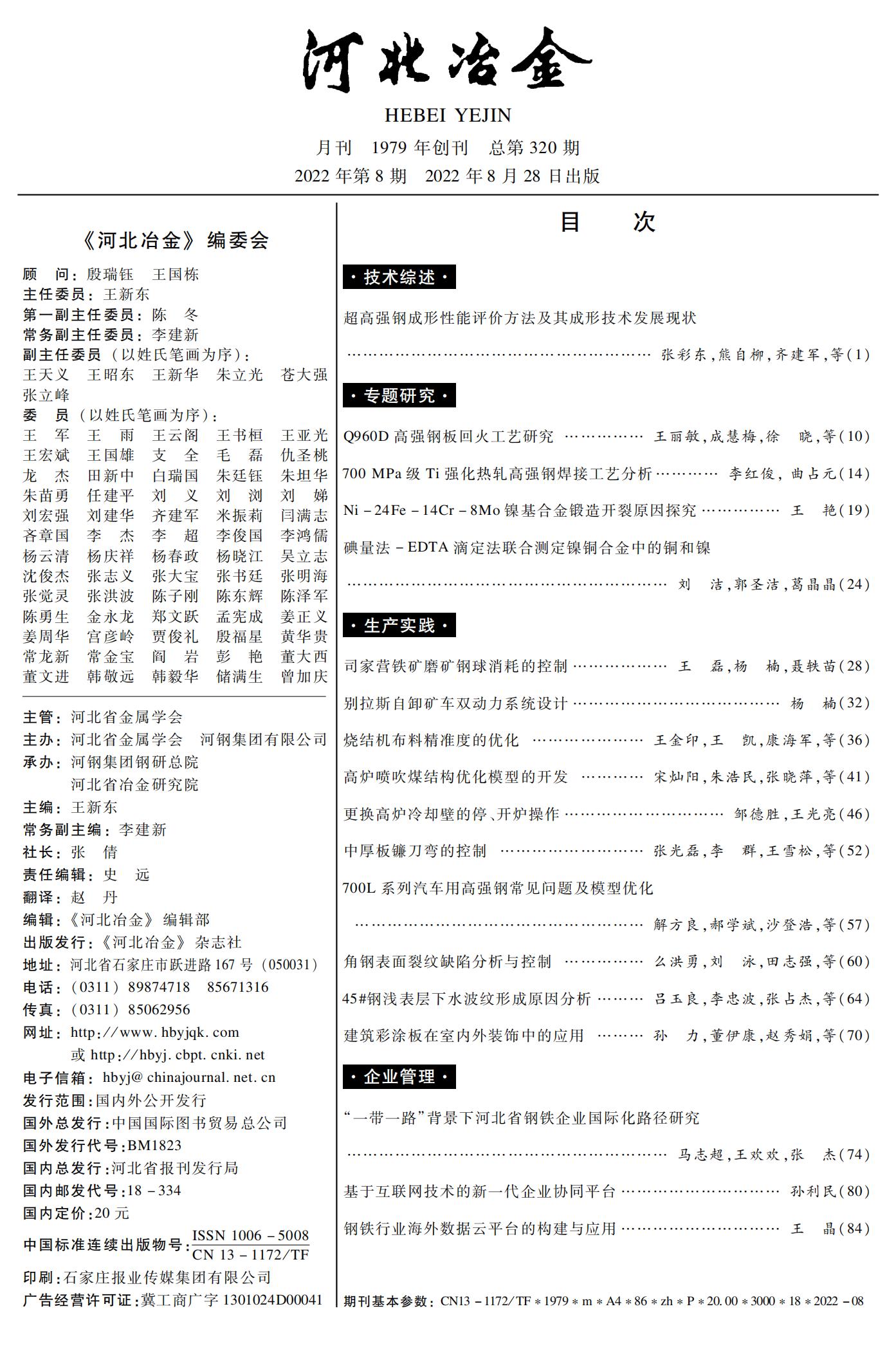 河北冶金2022年第8期目录