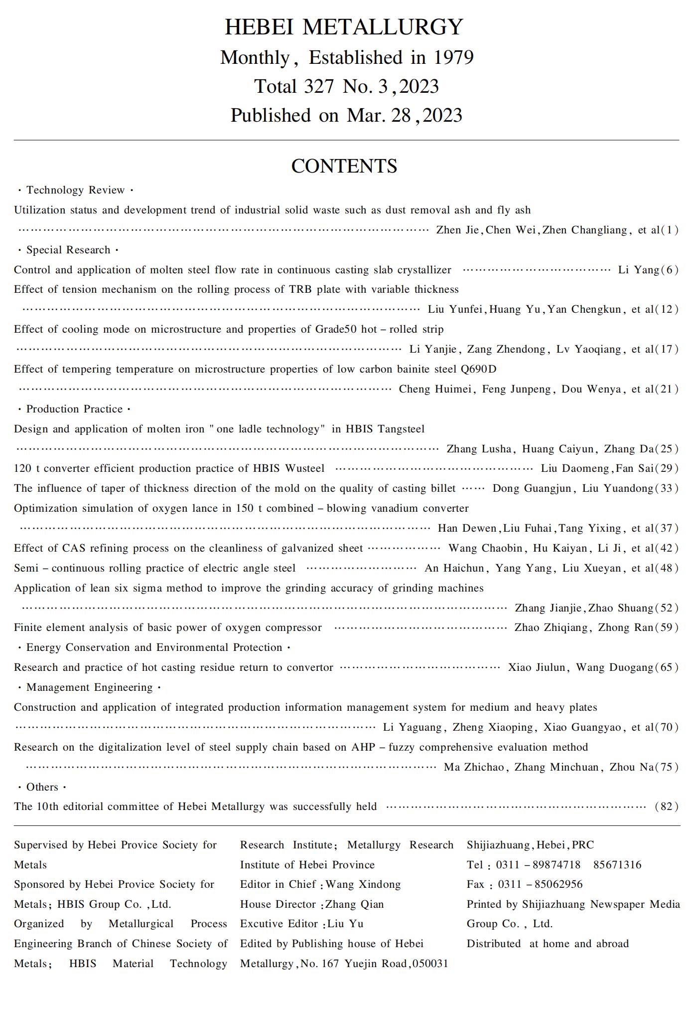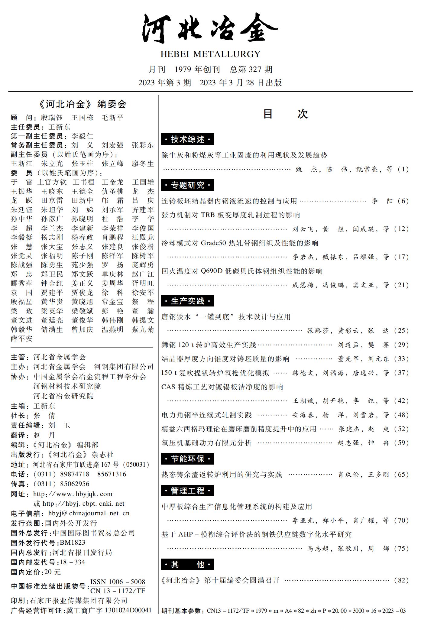 河北冶金2023年第3期目录