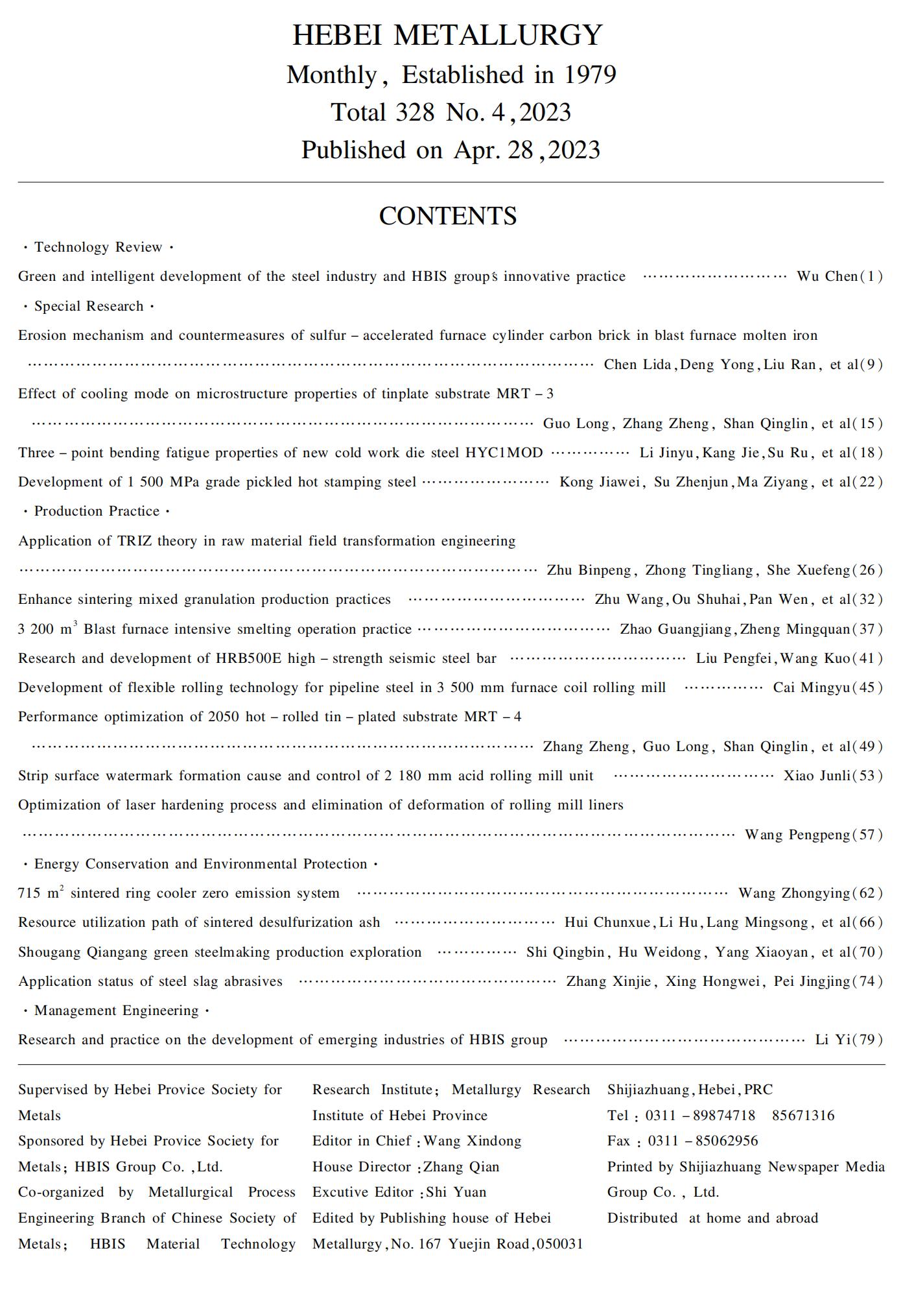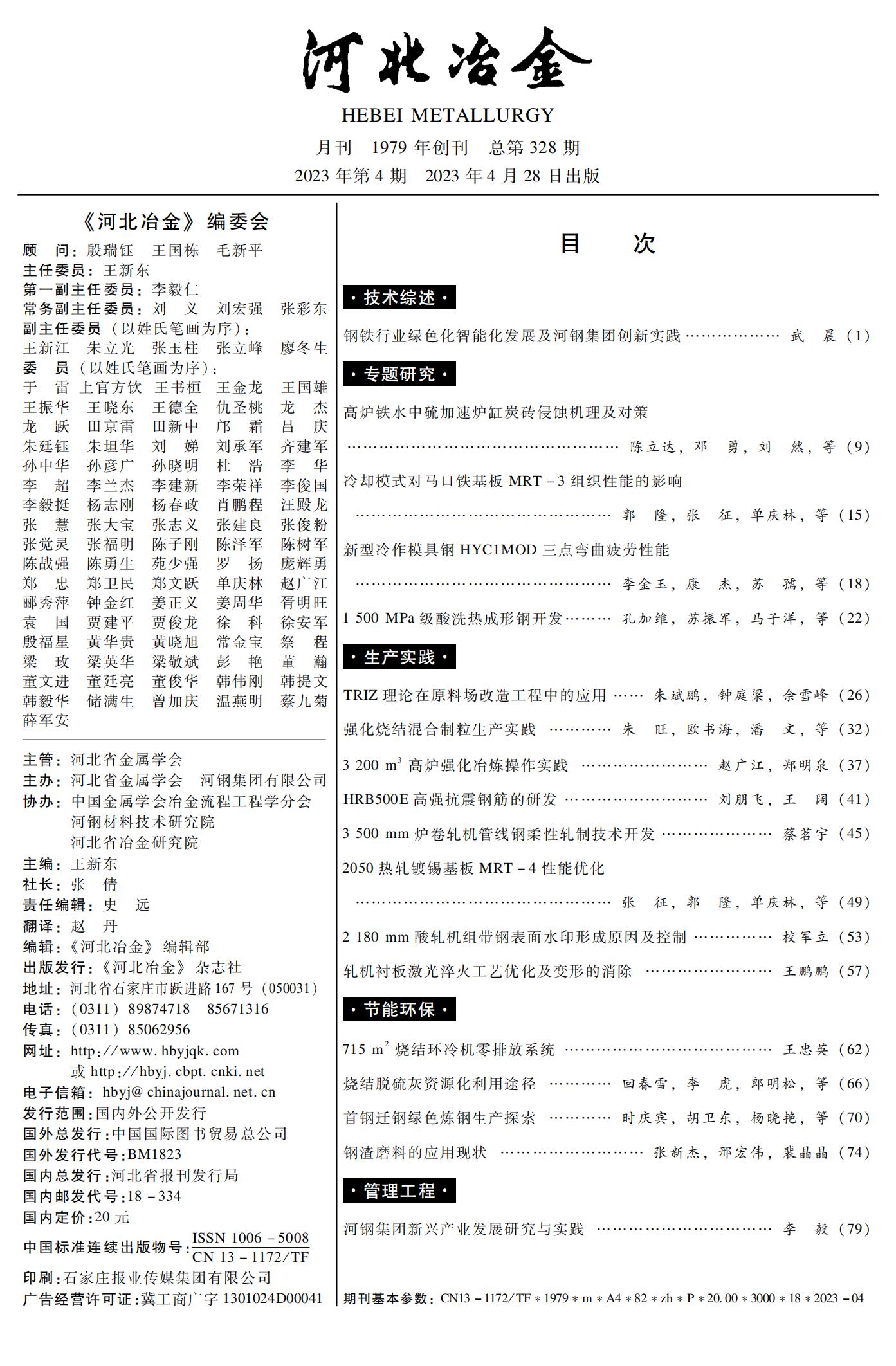 河北冶金2023年第4期目录