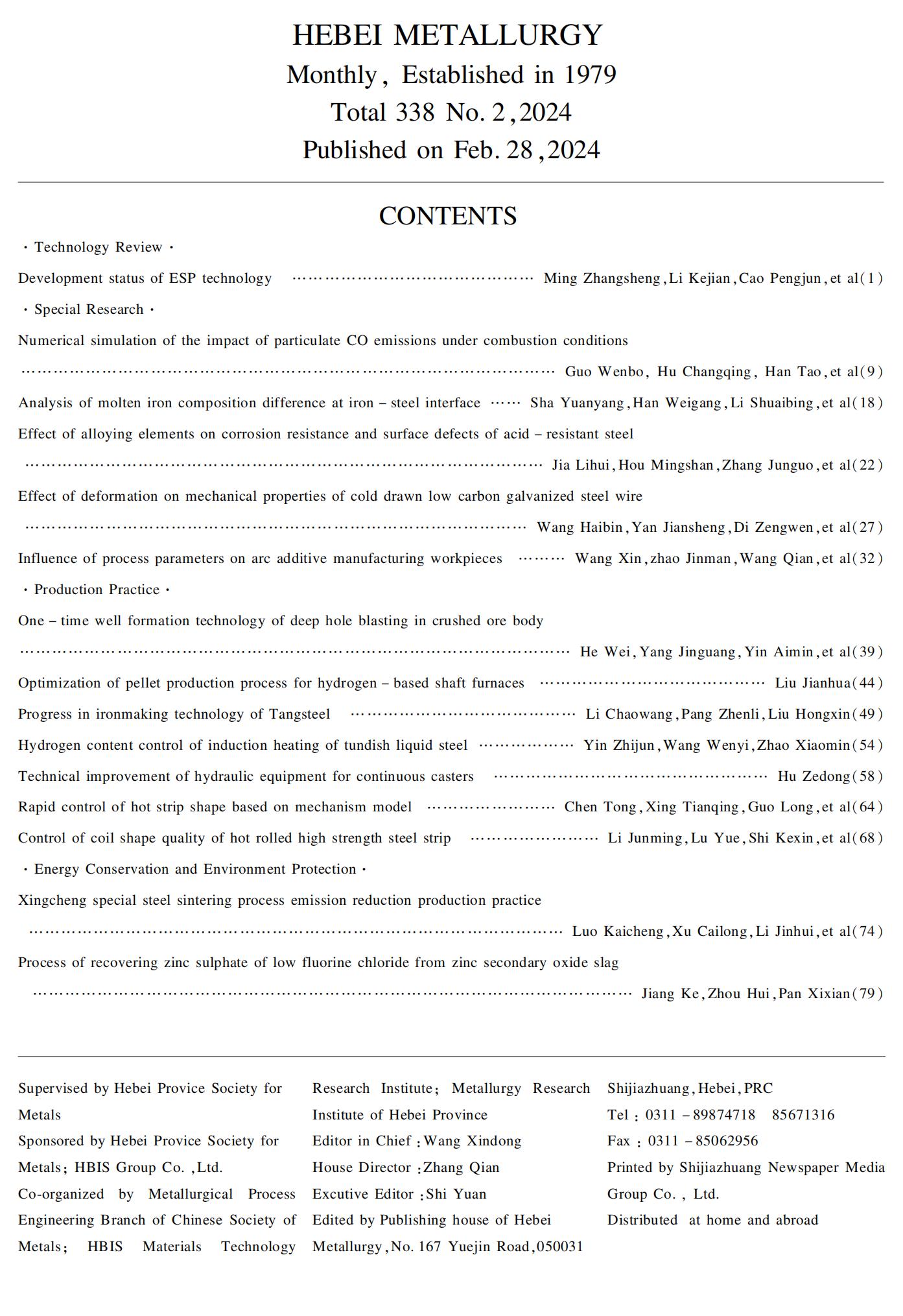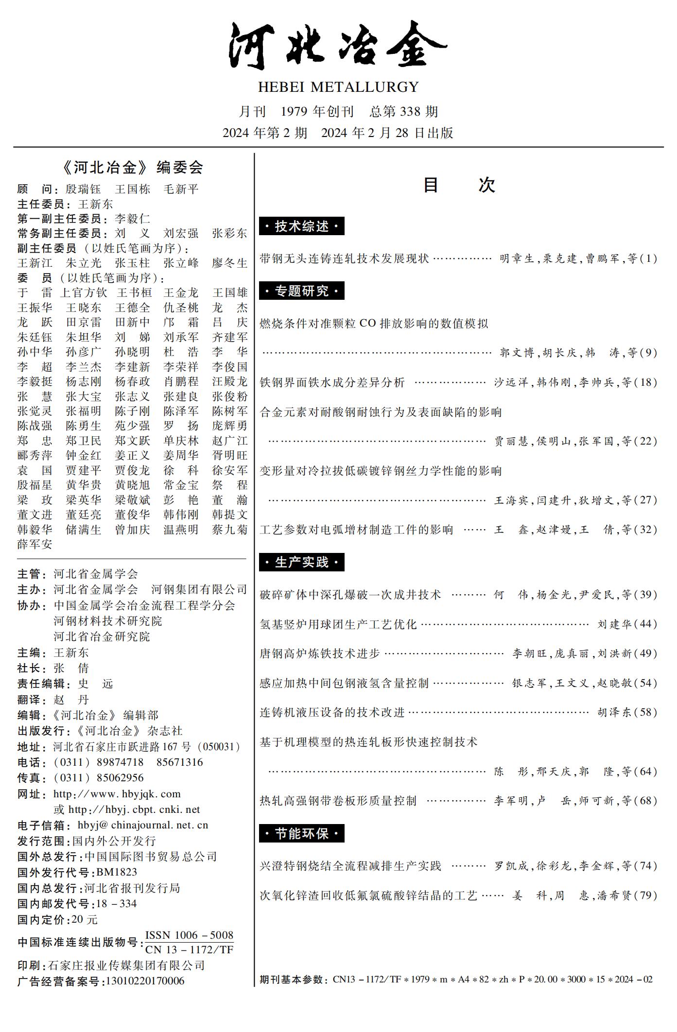河北冶金2024年第2期目录