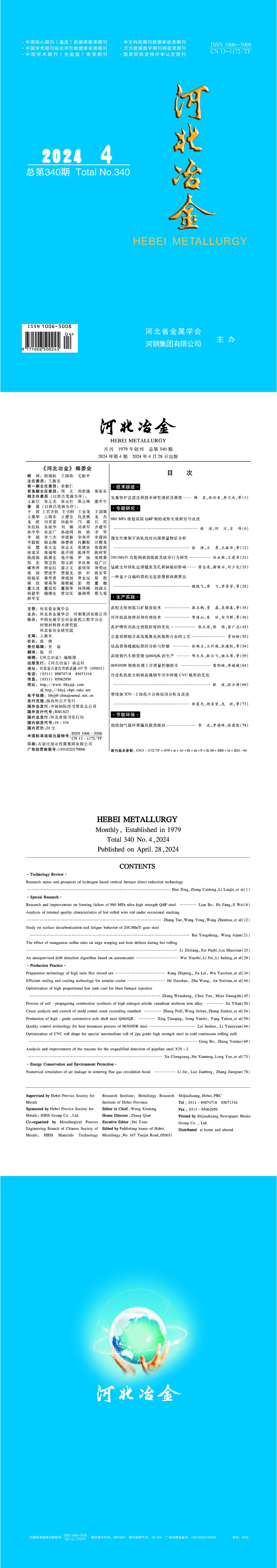 河北冶金2024年第4期目录