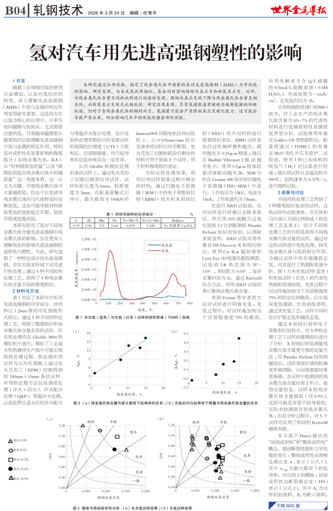 点击右方标题,查看原文:《氢对汽车用先进高强钢塑性的影响》