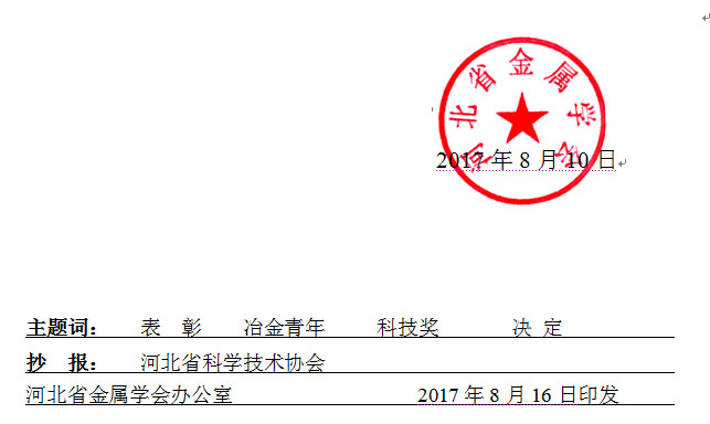 关于表彰2017年度河北冶金青年科技奖及提名奖获奖人员的决定