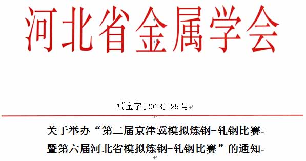 为了进一步顺应行业发展的需求,促进计算机仿真模拟在行业实训中的应用,推进京津冀三省市学会一体化协同发展,加强京津冀钢铁企业、高等院校之间的联系和互动,河北省金属学会、天津市金属学会和北京金属学会定于 2018年12月28—30日在天津联合举办“第二届京津冀模拟炼钢-轧钢比赛暨河北省模拟炼钢-轧钢比赛”。大赛由天津工业职业学院、河北工业职业技术学院共同承办,河钢集团有限公司协办,北京金恒博远科技股份有限公司提供技术支持。现将有关事项通知如下: