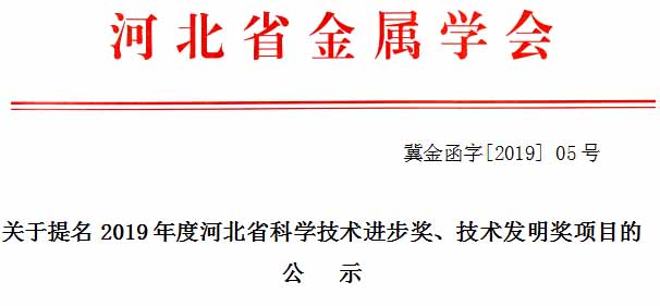 现将河北省金属学会提名2019年度河北省科学技术进步奖、技术发明奖等6个项目公示如下: 一、公示内容 1、科学技术进步奖 ⑴ 提名号:239—401 多成形特性超高强双相钢关键生产技术及全流程柔性化工艺控制 ⑵ 提名号:239—402 高品质矿用圆环链钢23MnNiMoCr54的研发 ⑶ 提名号:239—403 高效生产洁净钢转炉智能化底吹工艺关键技术应用和集成项目 (4)提名号:239—404 高炉高效排锌工艺研究 ⑸ 提名号:239—405 钒微合金强化HRB600(E)高强抗震钢筋开发及应用研究 2、技术发明奖 提名号:239—301 高品质钢轨铸坯冶炼控制技术及创新 二、详细事宜 1、公示自2019年4月23日起至2019年4月30日止,在河北省金属学会网站发布。网址:http://www.hbsyjxh.org/ 。直接点击提名项目查看(附:提名项目公示内容)。 2、对公示内容有异议者可在公示截止日前向河北省金属学会提交书面意见,逾期不予受理。 3、公示联系人:朱广文 郭殿玉 联系电话:13931891333、19933113125