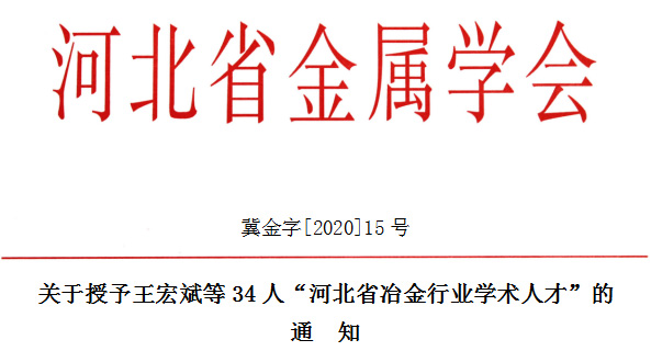 关于授予王宏斌等34人“河北省冶金行业学术人才”的通知